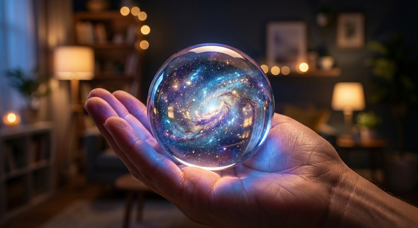 🔮 This 3D crystal sphere captures an entire glowing universe within its core